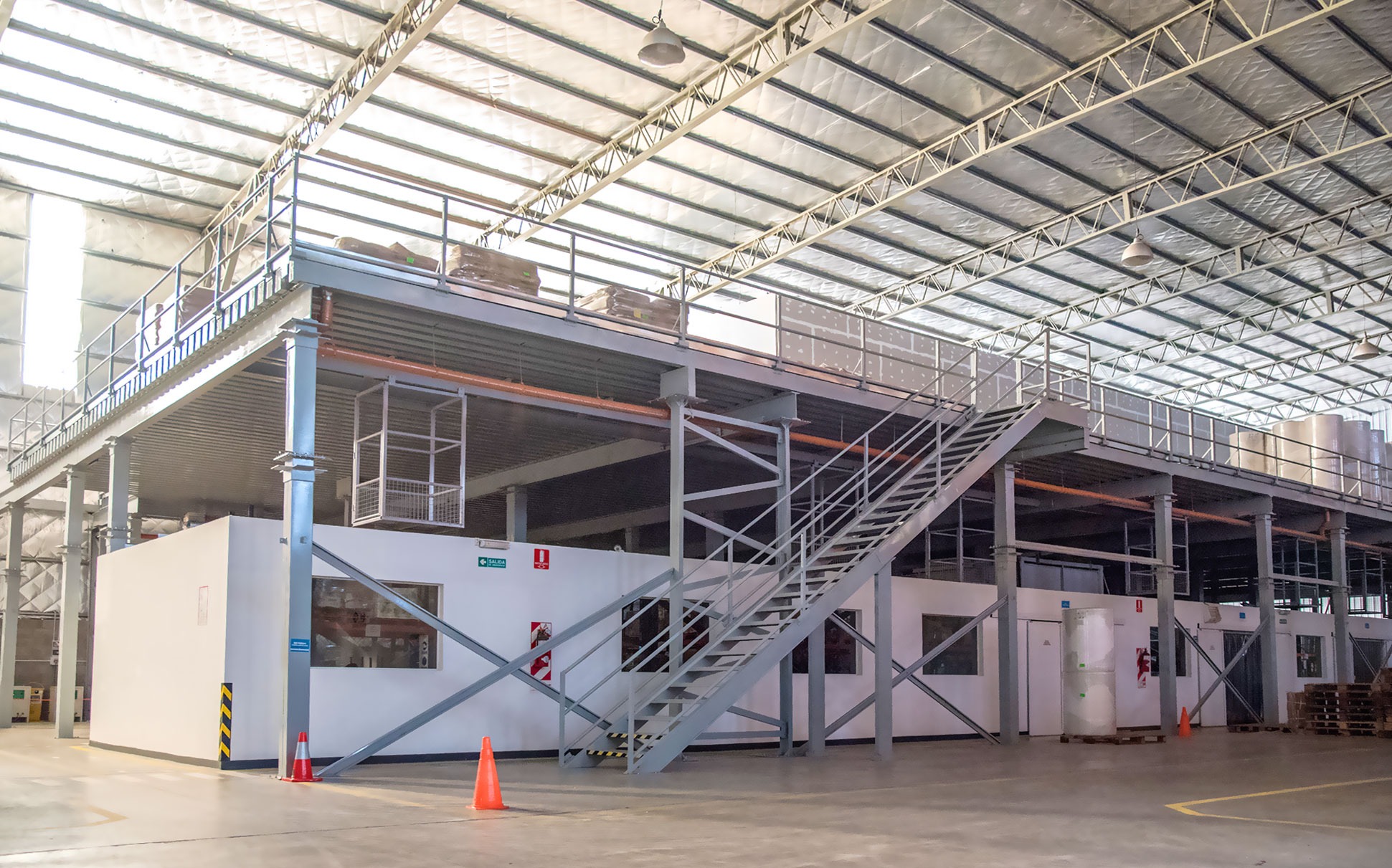 Las plataformas Industriales sirven para instalar sistemas productivos (fábricas) en doble altura, permitiendo duplicar el área de trabajo y colocar tableros eléctricos, máquinas o tolvas que sirvan para abastecer el área inferior.